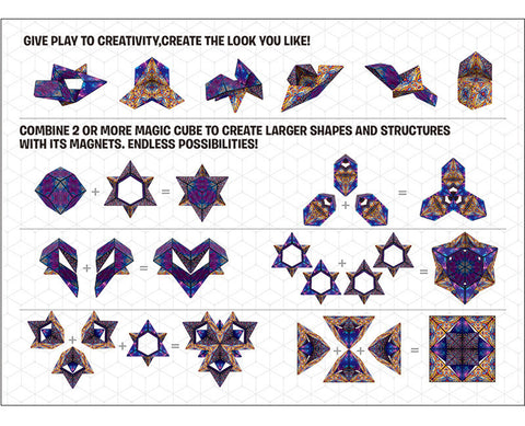 1 cube transforms into over 70 shapes. Combine 2 or more cube to build larger shapes and create more possibilities. Can you master the shape shifting box?