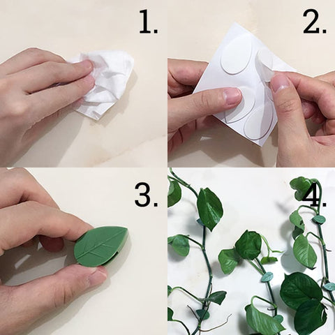 No-drill and damage-free, leaving no marks when removing and transferring the clip. Simple to use, just wipe clean the flat surface, put the adhesive at the back of the clip, gently stick on the wall and clip the vines.