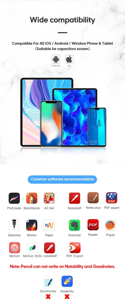 Stylus Pens for Touch-screen Devices - Our rechargeable active stylus pens are specially design for most touch screen devices including:Surface series, iPad 2018/ Pro/ Mini/ Air, iPhone XS/XS MAX/ XR/ X/ 8/ 8 plus/ 7/ 7 plus/ 6S/ 6 plus, Samsung, Dell, LG, Huawei and other most popular tablets, smartphones